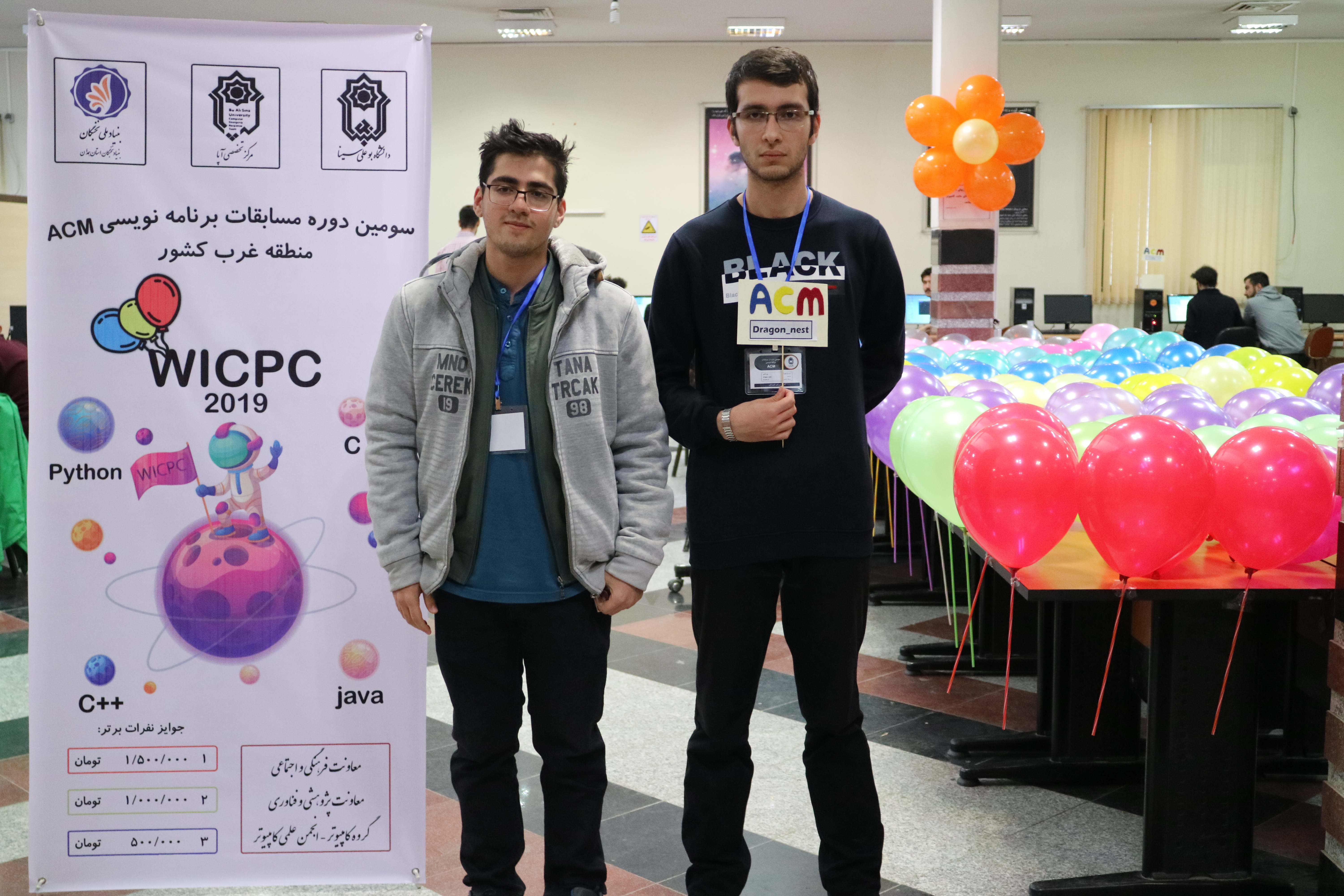 در مراسم اختتامیه در آمفی تئاتر دانشکده مهندسی با حضور دکتر بلالی رئیس بنیاد نخبگان استان همدان، دکتر مجذوبی معاون محترم پژوهشی و فناوری دانشگاه،دکتر رضوانی مشاور و رئیس دفتر ریاست دانشگاه، دکتر سراجی مدیر امور فرهنگی دانشگاه و دکتر بشیری مدیر پژوهشی دانشگاه صنعتی همدان برگزار گردید. در این مراسم که تعدادی از اعضای گروه کامپیوتر دانشگاه بوعلی سینا نیز حضور داشتند جوایز تیم های برتر اهدا شد. تیم اول مبلغ 15 میلیون ریال، تیم دوم مبلغ 10 میلیون ریال و تیم سوم مبلغ 5 میلوین ریال دریافت داتشند. به دلیل اینکه تیم های اول تا چهارم از دانشگاه بوعلی سینا بودند با حمایت رئیس دفتر ریاست دانشگاه و معاون پژوهشی و فناوری دانشگاه به تیم پنجم(اولین تیم خارج دانشگاه بوعلی سینا) جایزه 5 میلیون ریالی اهدا گردید.